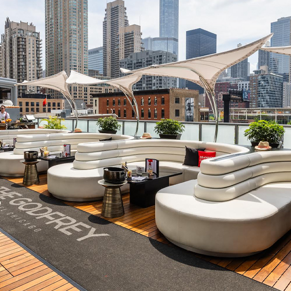 I|O GODFREY FEATURES A CUSTOMIZABLE VIDEO WALL, TWO-LEVEL FIRE PIT, FREE WI-FI AND SUPERIOR SOUND AND LIGHTING SYSTEM TO CREATE THE PERFECT VENUE FOR DJS, LIVE MUSIC PERFORMANCES AND PRIVATE EVENTS.